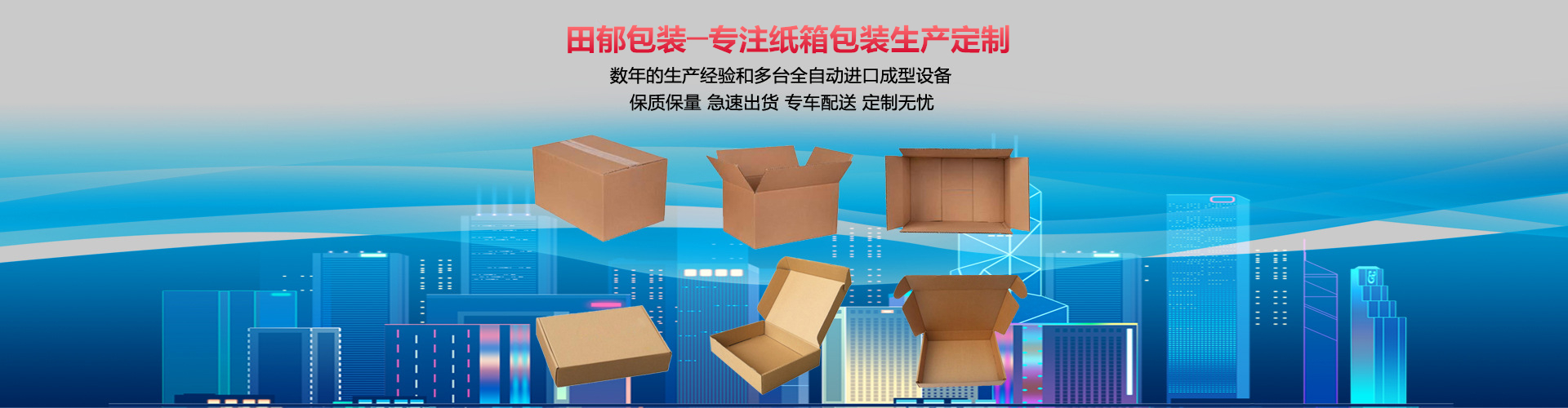 公司集设计、生产、销售及服务于一体,多年来已积累了丰富的生产及管理经验,拥有全自动高速印刷机、全自动粘箱机、模切机等先进的纸箱、纸盒制作机器。拥有公司自管的物流运输团队,能确保送货的及时性。对产品追求精中之精,尽善尽美,我们将以这种努力回馈您对我们公司的厚爱与信任,实现双赢的目标,让我们携手共创美好的明天!